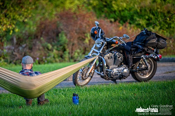 A peaceful moment occurs in this scene, where the traveler, partly resting in a hammock, faces away from the camera, leaving the viewer to wonder about…