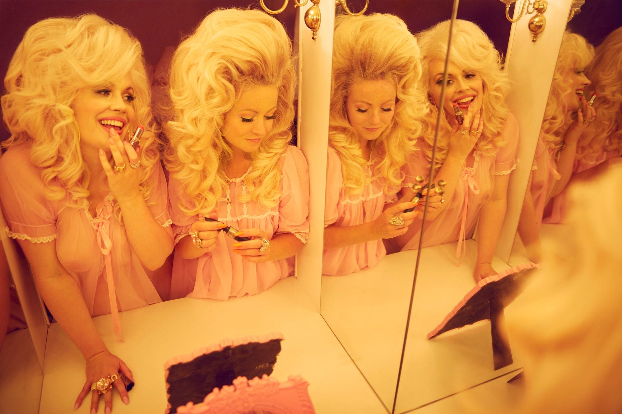 "Dear Dolly, Baron Dolly Parton" delves into the photo series created by Alice Hawkins, a British photographer, The series features drag queen performers paying homage to the legendary country singer and icon, Dolly Parton. It highlights the significance of Dolly Parton as an inspiration to the LGBTQ+ community, particularly drag culture, and how her image and music have been used to empower and celebrate diversity.